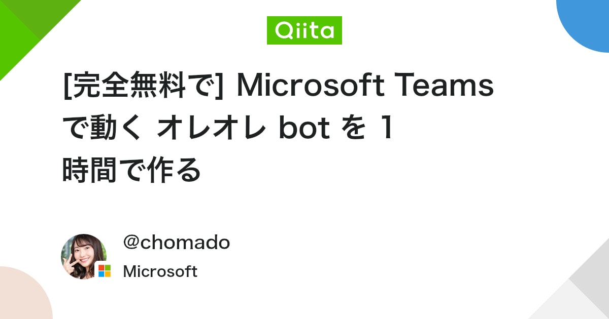 [完全無料で] Microsoft Teams で動く オレオレ bot を 1 時間で作る - Qiita